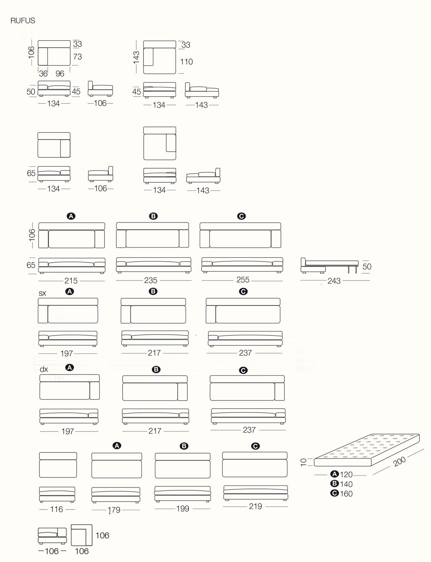 Disponible en canapé fixe , en canapé-lit ou avec une méridienne spacieuse, Rufus offre élégance, polyvalence et qualité supérieure dans toutes ses versions.