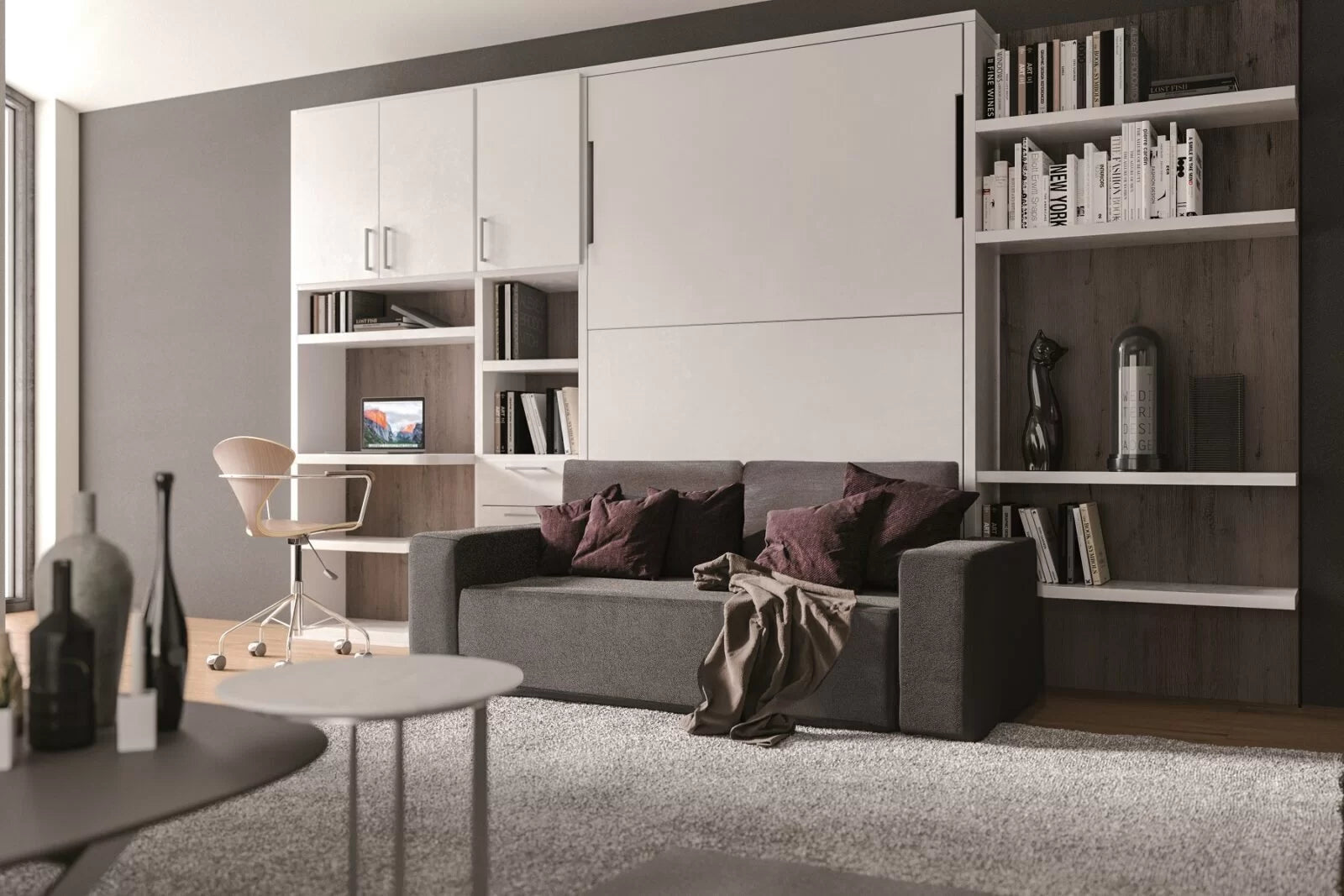 Our collection of matching wardrobes, storage and shelving units that integrates perfectly with our murphy wall beds