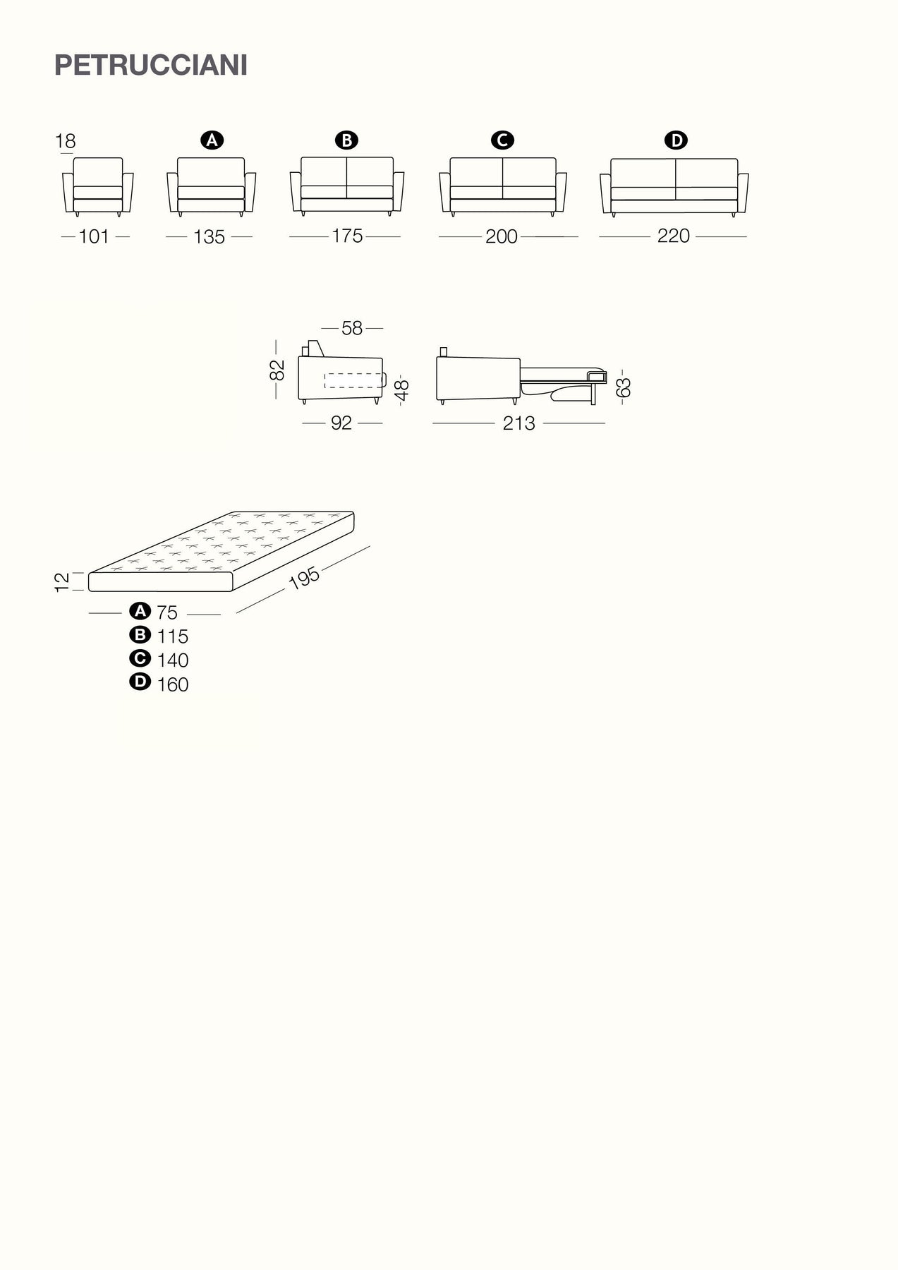 Le canapé Petrucciani est disponible en version 2 ou 3 places, avec différentes configurations et dimensions. Le canapé-lit s'ouvre facilement, sans qu'il soit nécessaire de retirer les coussins du dossier. Le canapé et le canapé-lit sont entièrement déhoussables.